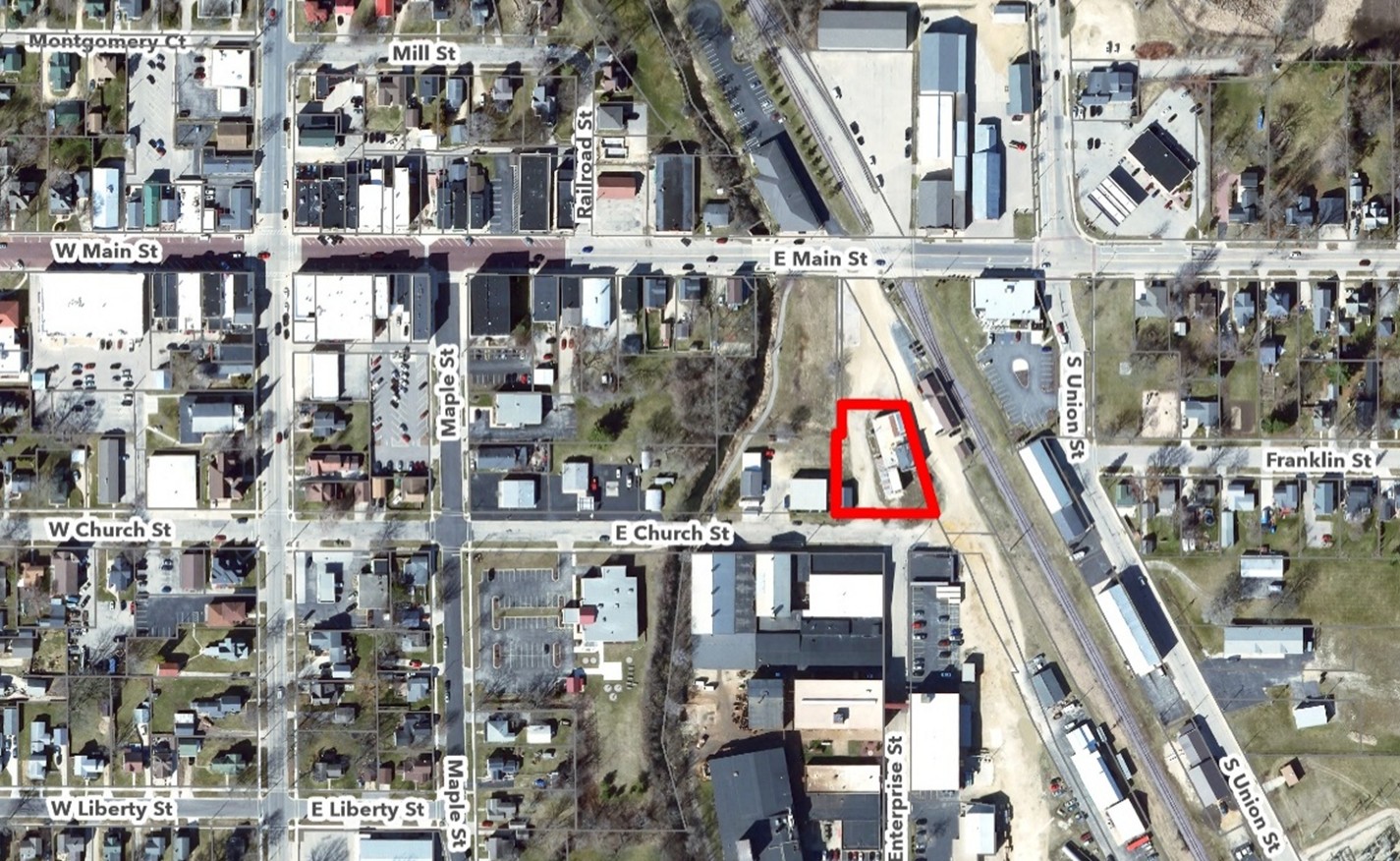 Located just south of E. Main Street near the entryway of the downtown commercial district, the site presents a significant opportunity to strengthen Evansville’s identity, encourage reinvestment, and improve connections between Church Street, Main Street, and surrounding neighborhoods. This site was previously identified within the Allen Creek & North Union Street Redevelopment Master Plan as an opportunity to support long‑range plans for mixed-use development and improved access to Allen Creek.